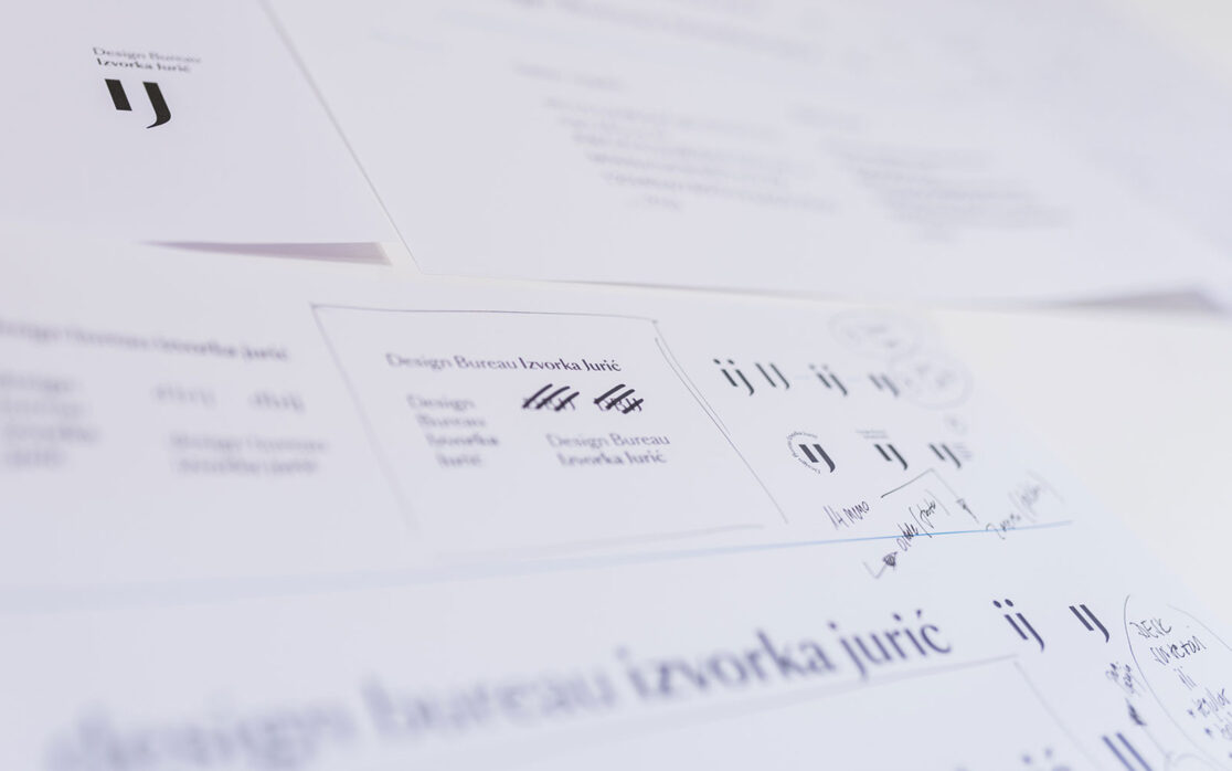Rebranding Design Bureau Izvorka Jurić nastao je kao evolucijski korak. Faza etabliranja studija je prošla i više puka “informativnost” nije presudna pa se krenulo prema snažnijem komuniciranju osobnosti studija. Novim vizualnim identitetom dominira karakterističan znak sa funkcijom identificiranja Izvorke Jurić kao ključne osobe studija.