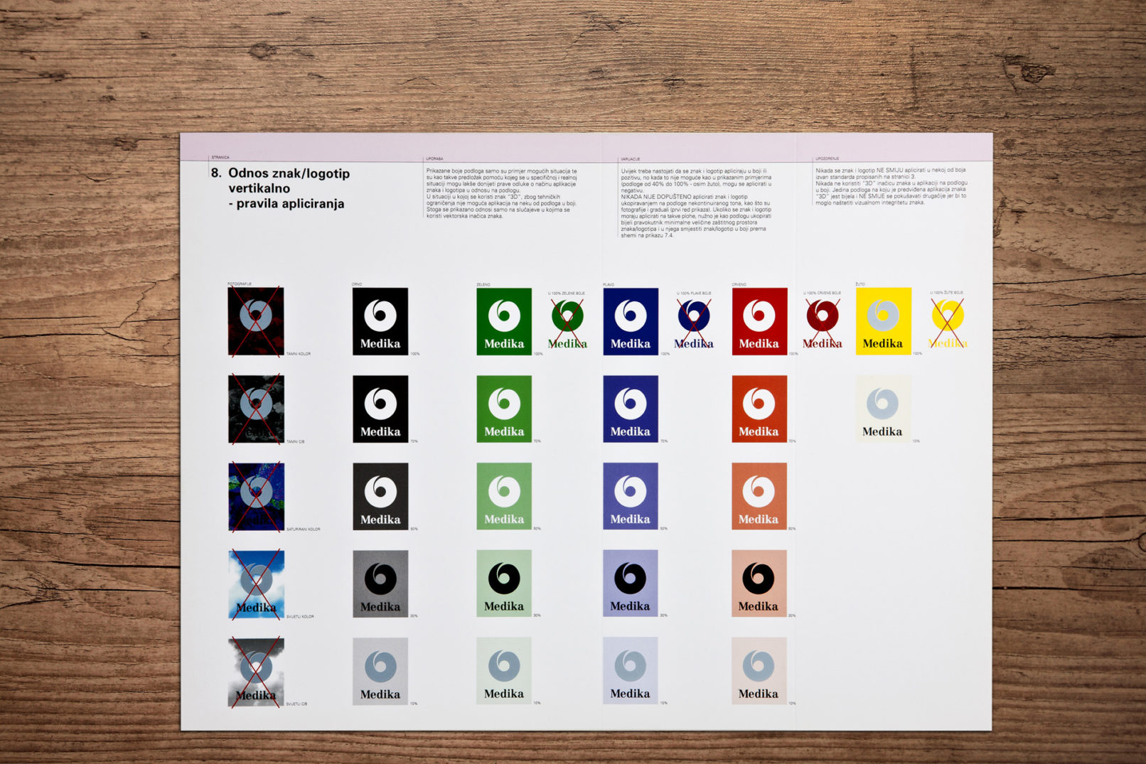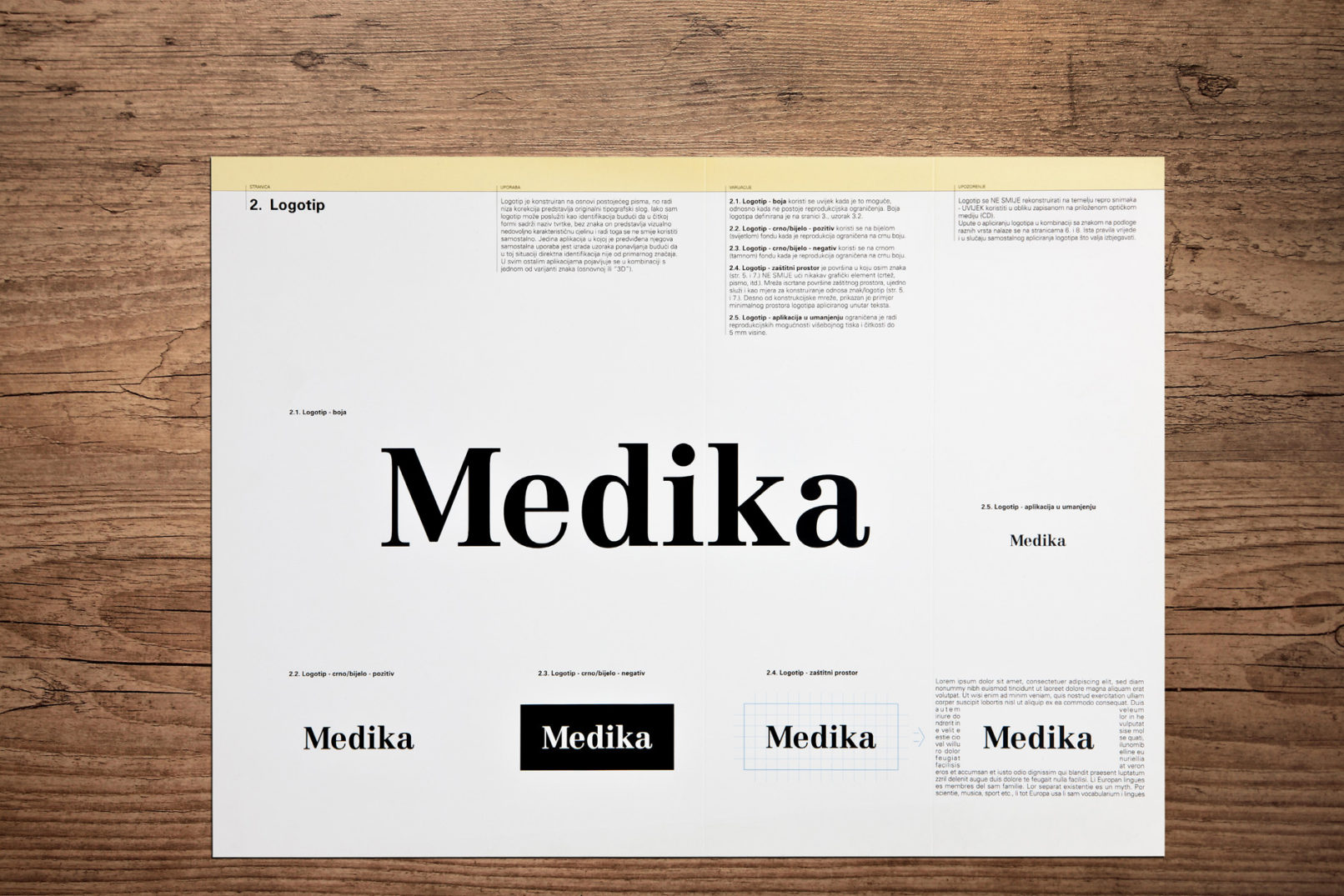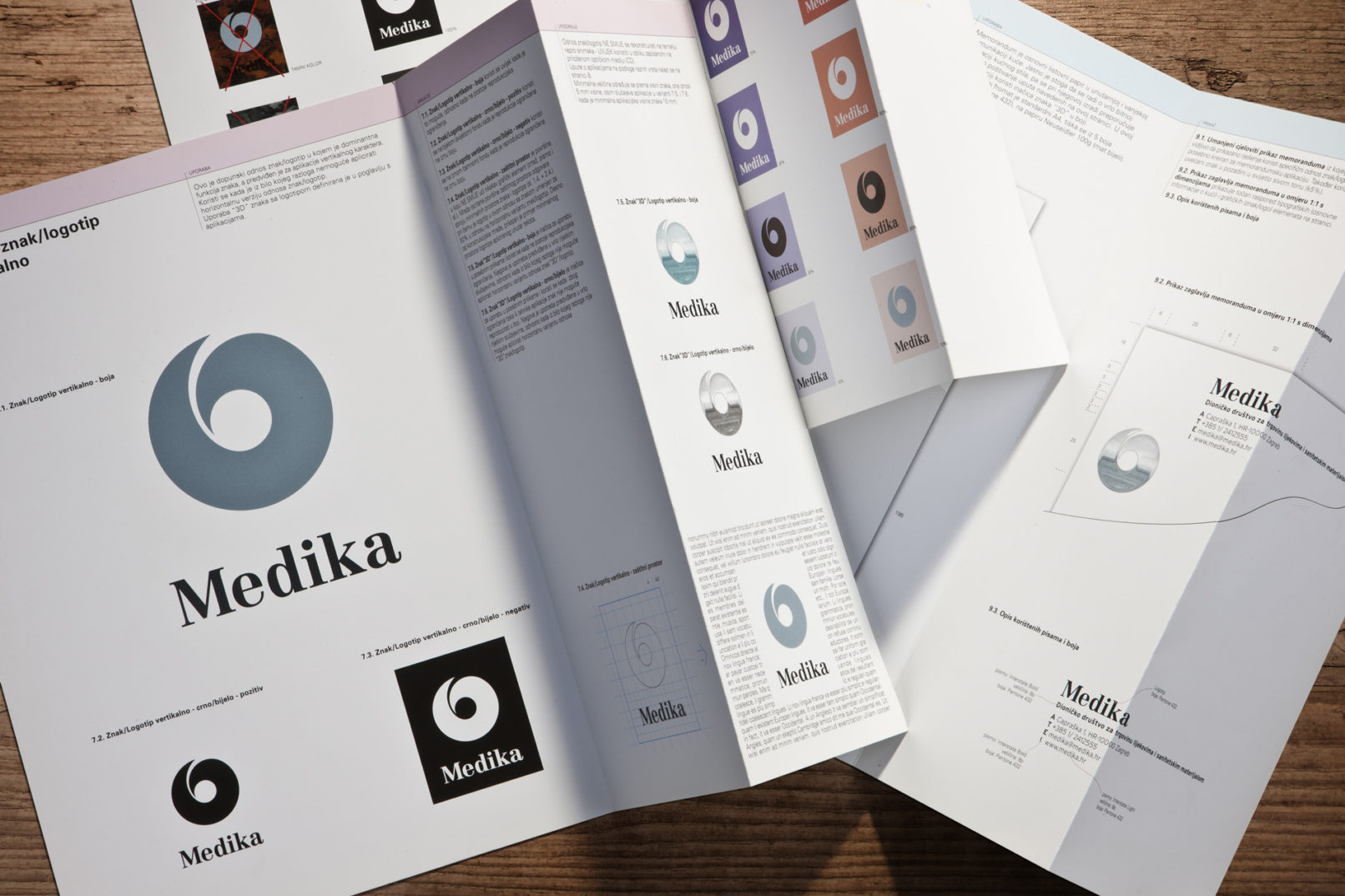 Medika je najveća hrvatska veledrogerija. Simboličnim spajanjem lokalnog i globalnog kroz prikaz stalnog kretanja u znaku, te asocijacijom stabilnosti i tradicije u logotipu, formiran je snažan i prepoznatljiv vizualni identitet. /// Naručitelj: Unex Euro RSCG Zagreb za Medika, Zagreb.