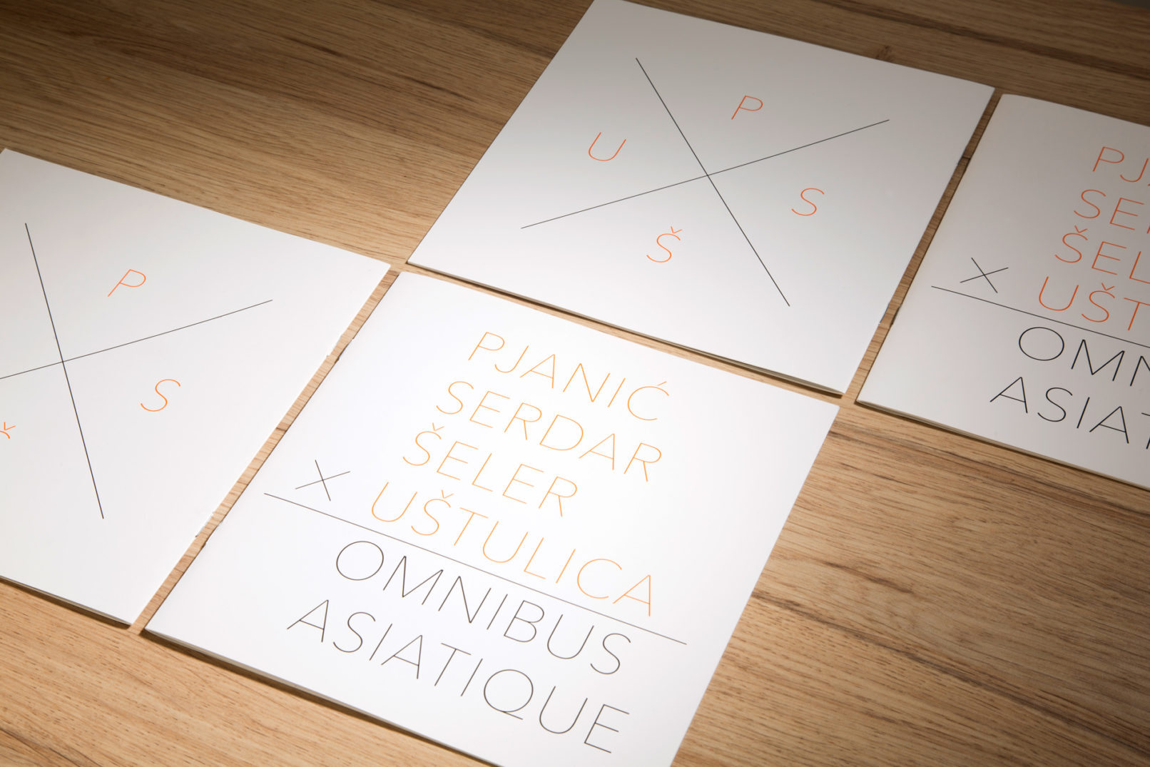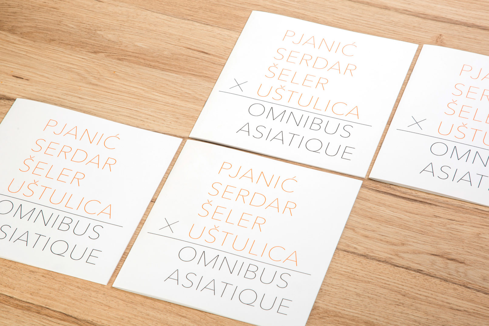 Izložba četvorice prijatelja i profesionalnih fotografa sa zajedničkog putovanja zemljama Azije. Kako se radi o pojedincima vrlo izraženih autorskih stilova, identitet je definiran tipografski, otvarajući se prema fotografiji tek kroz zasebne autorske kataloške cjeline. /// Naručitelji: Saša Pjanić, Hrvoje serdar, Igor Šeler, Siniša Uštulica.